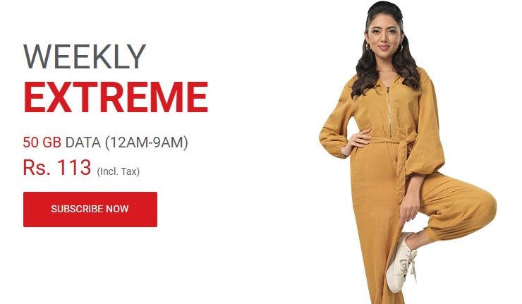 As it is clear from the data package name, the user will be able to use 4G data with extreme MBs. 50GB of data are extreme MBs which are available for just rupees 113 including taxes. This is all because of the unique timing set for this bundle.
